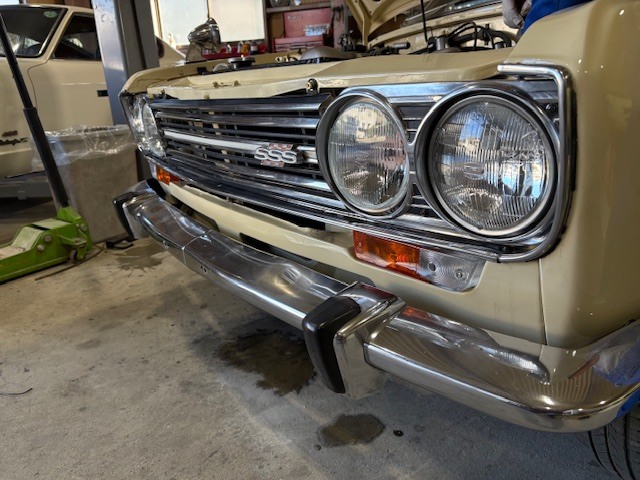 全塗装(外装・室内ルーム・Egルーム・トランクルーム)下回りチッピング塗装後ボディー色処理・F&RガラスウェザーNew取替・ドアウェザー左右New取替・リアサイドウィンドウウェザーNew交換・ボールベアリング(インナー&アウター)New取替・足回り各ブッシュ取替・ストラトアッパーヘッドNew取替・油圧センサーNew取替・水温センサーNew取替・油温センサーNEW取替・トランクウェザーNew取付・トランクカーペット作成・トランクボード作成・リアブレーキカップ交換OH・フロントディスクパッド&カップキット交換・ブレーキホース前後New交換・フジツボタコ足耐熱塗料処理&エグゾーストステンレス製Newフジツボ製レガリス・ドア内装パネル左右New取替・純正シート補修処理・フロア防音プチルシート貼付&ルームカーペットNew張替・リアボードNew取替・ブレーキマスター&クラッチマスターNew交換・フロントディスクOHキャリパーピストンNew交換&シールキット交換・リアドラムシリンダー&ドラムシューNew交換・ハンドブレーキワイヤNew交換・エンジンミッション洗浄処理・SOLEXキャブ+ファンネル&マニホールドブラスト処理・ガソリンタンク洗浄内側コーティング処理&フューエルラインNew張替・燃料フィルター&電磁ポンプNew変更・フロントグリル再生塗装済・マーシャルW反射ヘッドライト当時物・フロントマーカーNew交換・純正燃料キャップ・エンジンヘッドカバーチジミ塗装済・アルミラジエターNew入替・電磁式強制ファン取付・電磁ポンプ&電動強制ファントルグスイッチ取付(2回路単独ヒューズ配線)、ウォッシャータンク+配管New+噴射ノズルNew取替、バッテリーキルスイッチ取付、ボルテージレギュレーターNew交換、テールランプシールNew交換済、キーパッキンNew交換済、キッキングプレートNew、ドアインナーモールNew、ドアウィンドウガラスチャンネルNew取付、ドアウィンドウアウター水切りNew、クラッチオペレートNew取替・ミッションハウジングブーツNew、基本合口パーツ(ナットネジ類)原則Newにて組込済。各所ゴムグロメットNew取替・廃盤のオリジナル部品はウォーターブラストにて処理をして防錆処理して組込。